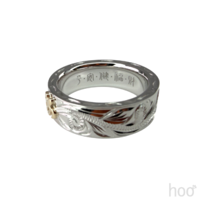 リングの内側の刻印に「平・安・健・福・財」の漢字を施して