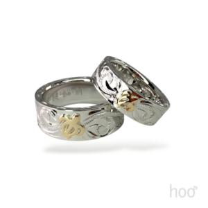ゴールドホヌがそっと寄り添うシルバーリング。