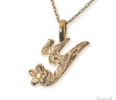 hooのイニシャルネックレスは繊細なハワイアンの彫りに幸せを運ぶプルメリアを添えました。